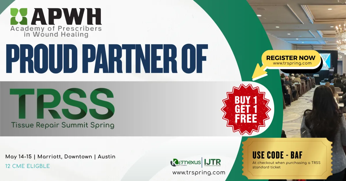 APWH is pleased to be a partner of the Tissue Repair Summit Spring (TRSS) in Austin Texas, May 14-15, at the downtown Marriott.